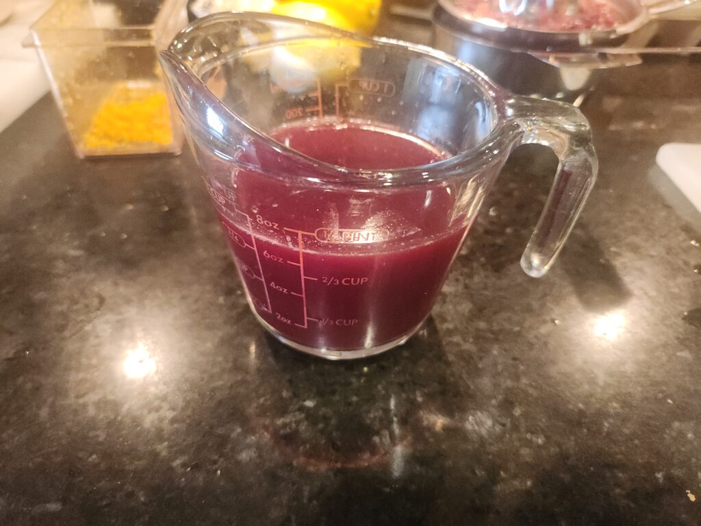 - In heavy bottomed saucepan, place juices, egg yolks, and sugar. Cook over low heat until thickened, about 190°F.